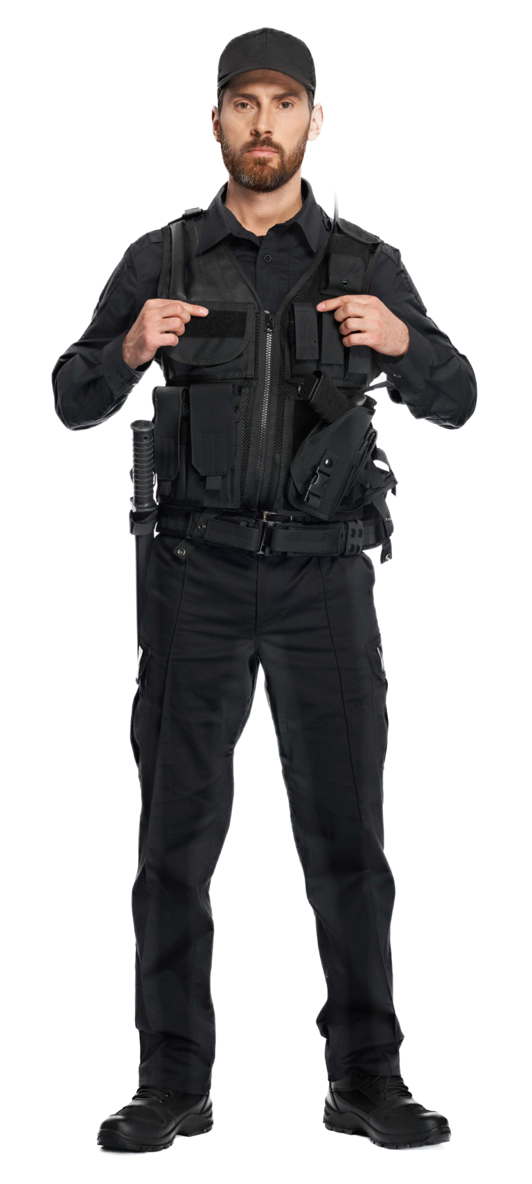 Our guards report to duty in presentable company uniforms with a neat appearance. Our policy requires guards to press and clean their uniforms and polish their shoes for a clean, presentable look.